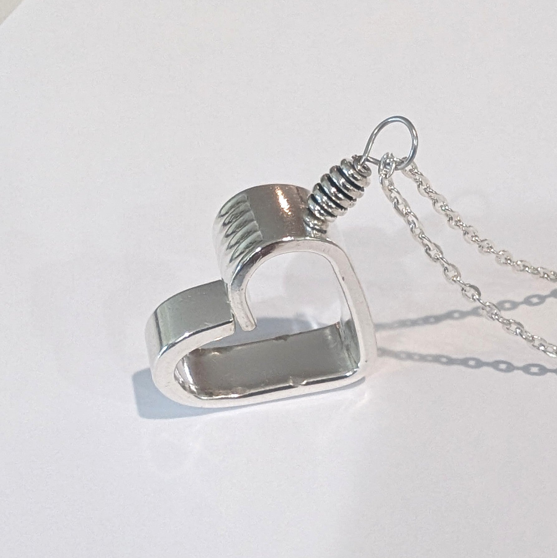 At its heart is a reclaimed piece of history — a fork or spoon handle selected for its pattern and presence, then cut, forged, and finished by hand into a clean, iconic heart silhouette. It’s more than jewelry: it’s a small narrative of renewal, love, and thoughtful design.