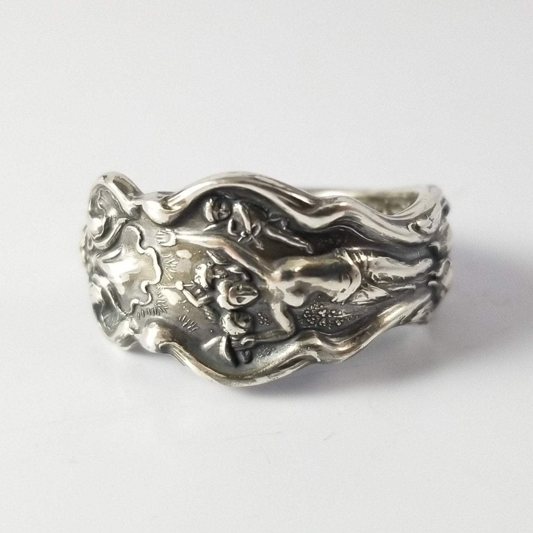 Check out our solid silver spoon rings for sale. These rings are made from genuine antique 'coin silver' 'flatware from the North America, Europe and Asia. The flatware isn't silverplated, but rather uniformly solid silver. Most modern consumers are familiar with Sterling Silver (.925), which is the most widespread solid silver standard today. The antique flatware pieces used for this collection are made from sterling silver and other solid silver alloys.