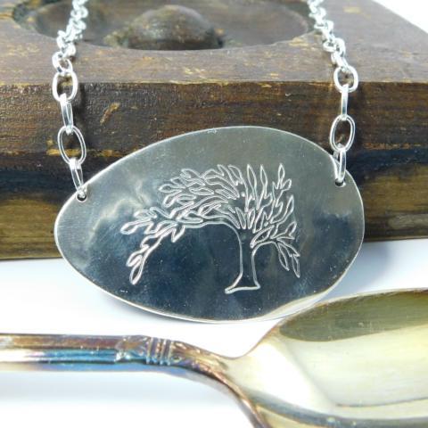 Check out our Engraved Tree of Life collection of spoon rings, silverware necklaces, bracelets and more. We engrave a beautiful Tree of Life design on each piece, using manual engraving tools. The Tree of Life symbolizes continuity, rootedness and a deep connection to nature. It's an important symbol in Judaism, Celtic culture and elsewhere.
